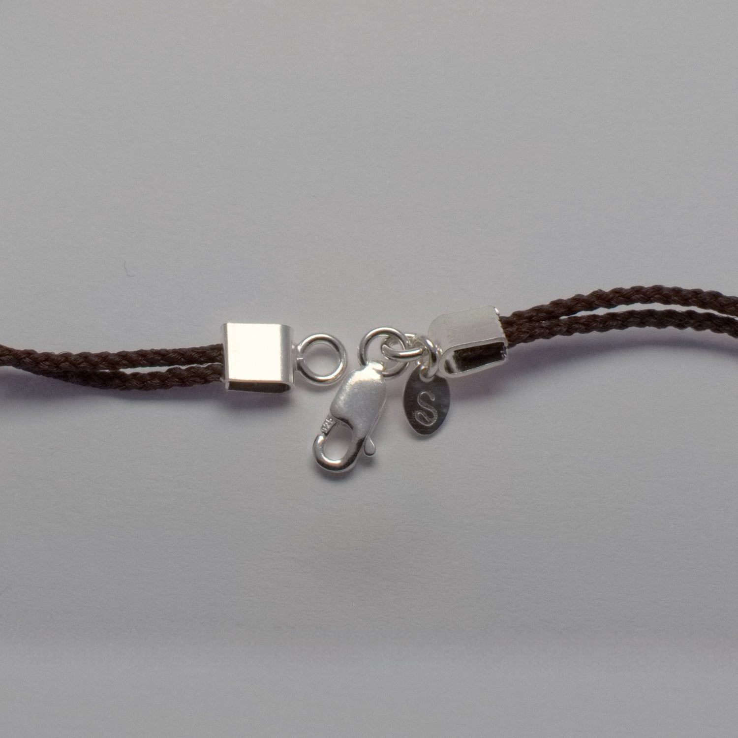 Chaque bracelet associe l’argent à un cordon en nylon ECONYL®, un fil régénéré à partir de déchets plastiques.