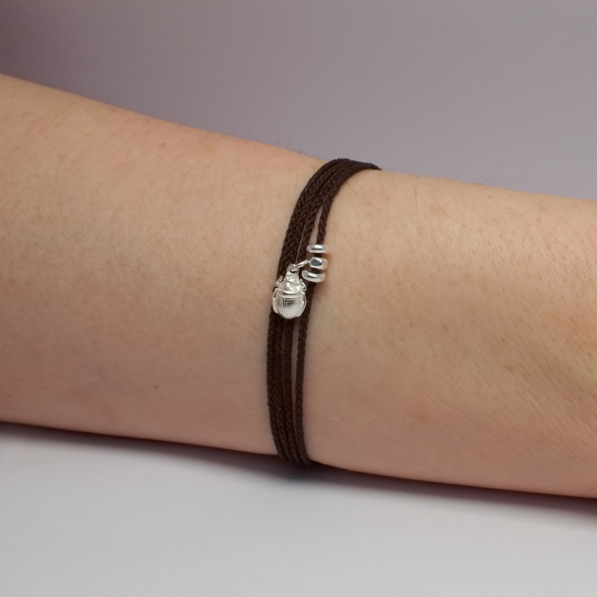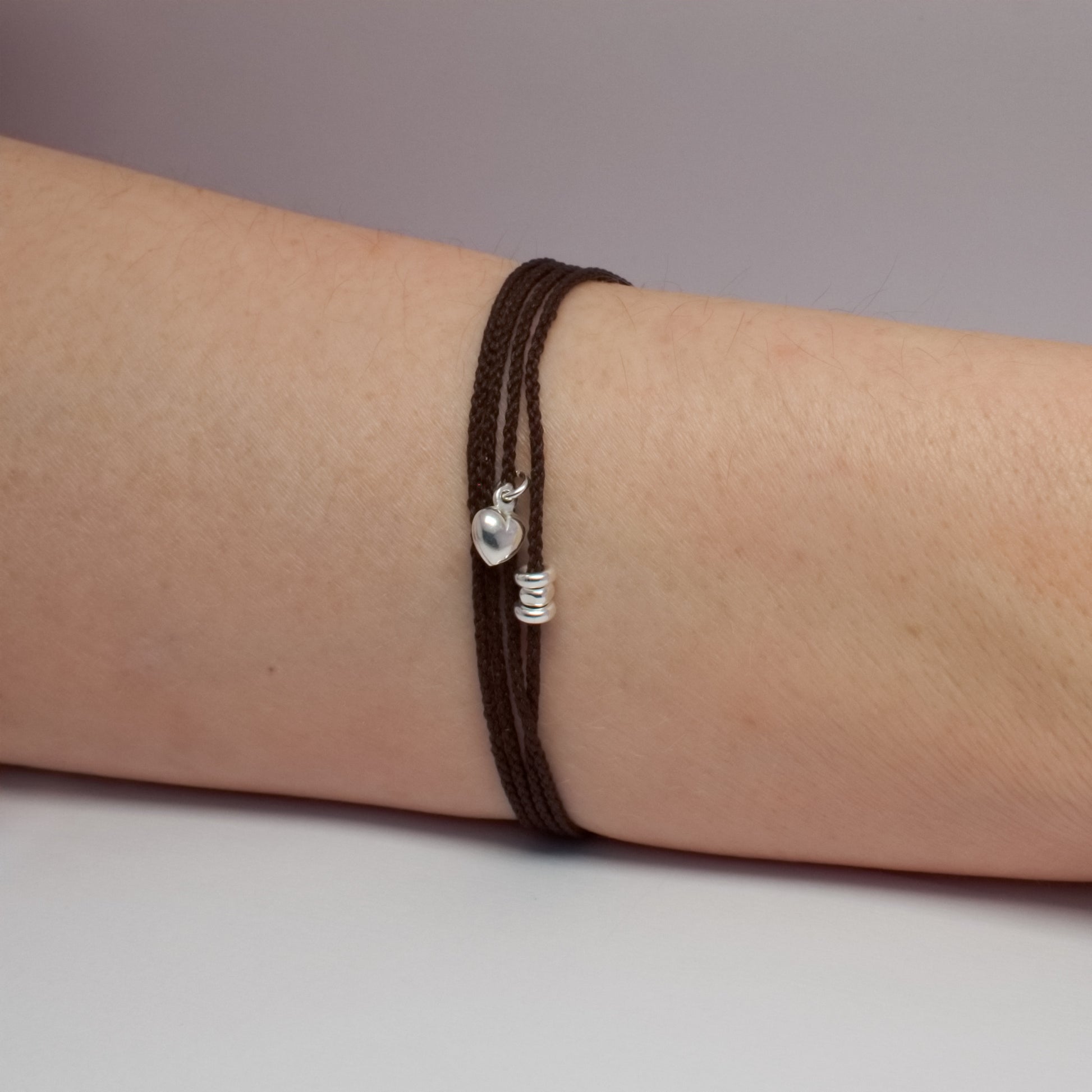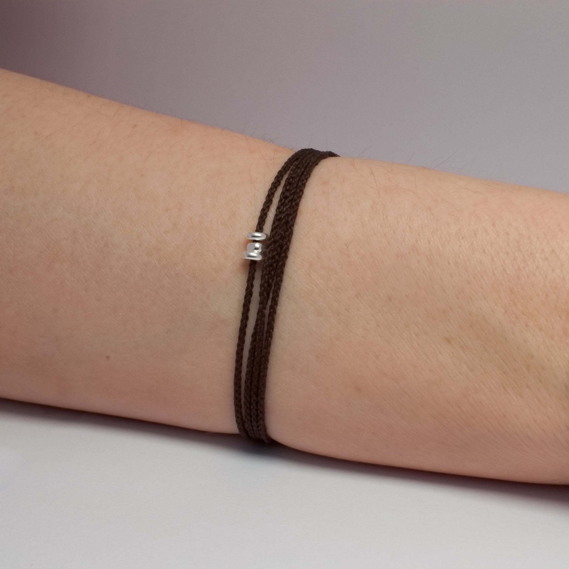 Bracelet en nylon ECONYL® Brun Profond et Argent 925 recyclé.
