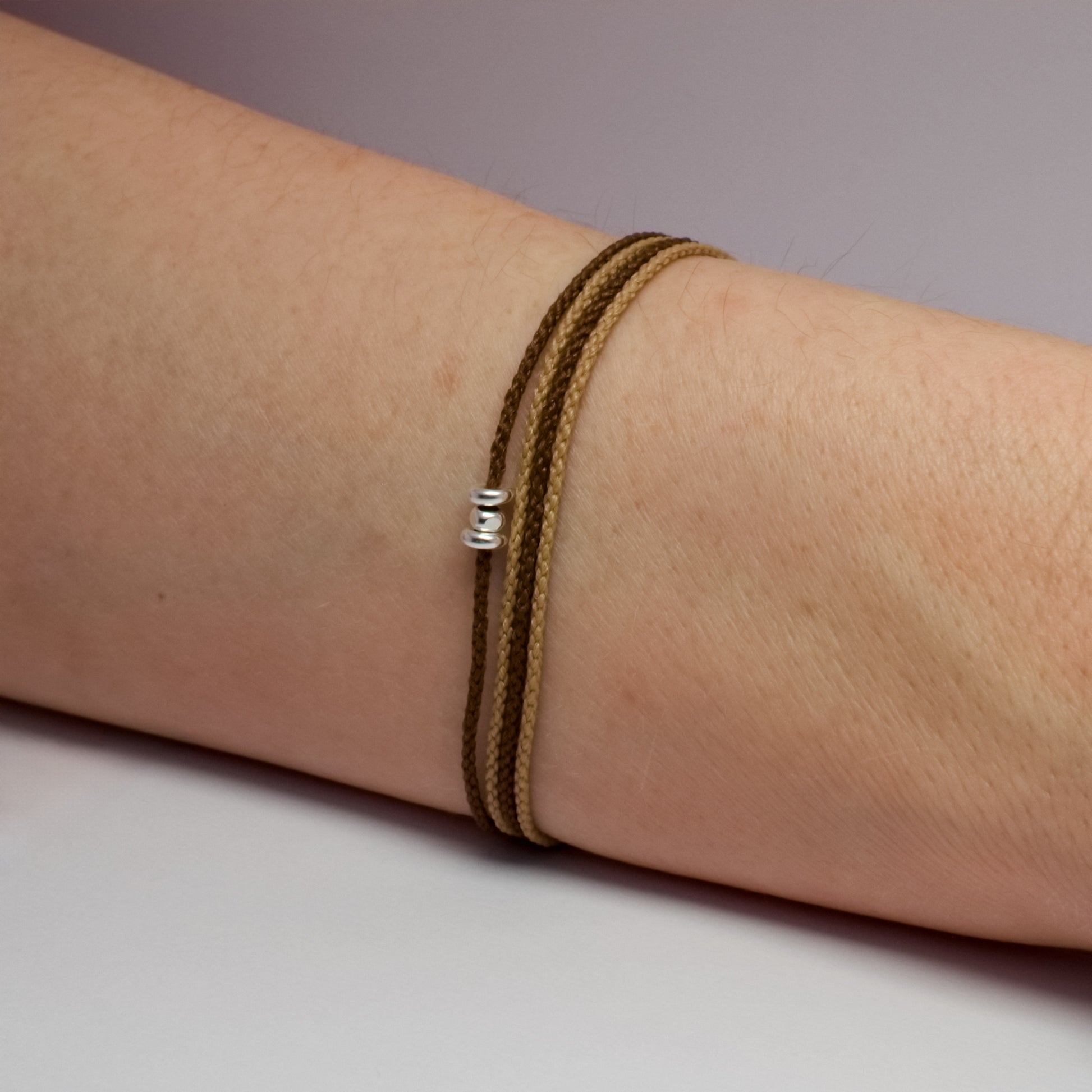 Bracelet en nylon ECONYL® Brun Naturel & Beige Cendré et Argent 925 recyclé.